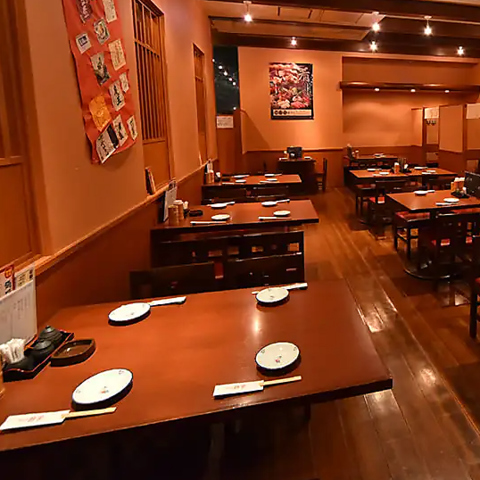 周囲を気にせず、落ち着いてお話しながらお食事をしていただけるようにお店を設計しています。テーブル半個室や掘りごたつ半個室など、気分やお仲間に合わせてお選びください。またフロア貸切も30~40名様で承ります。詳しい内容を是非スタッフにご確認ください。お待ちしております!