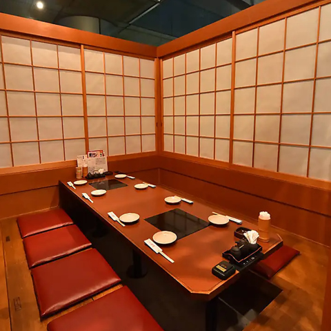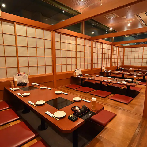 靴を脱いでゆったりとくつろげる掘りごたつ席の半個室を多数ご用意しております。仕切りを外せば最大32名様までの宴会場としてもご利用いただけます。