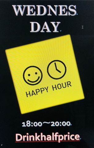 | カウンター | 1名様×11 | 水曜日限定イベント!ハッピーアワー!!ドリンク半額!! |