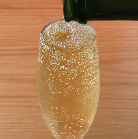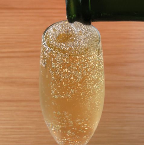 目の前でなみなみまで注がれるスパークリングワイン☆わくわくする演出・・・♪