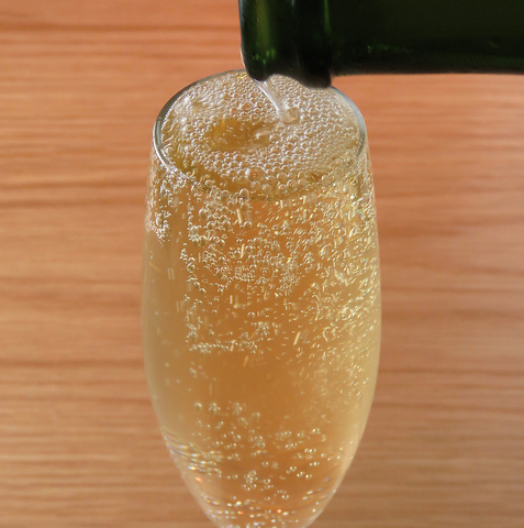 目の前でなみなみまで注がれるスパークリングワイン☆わくわくする演出・・・♪