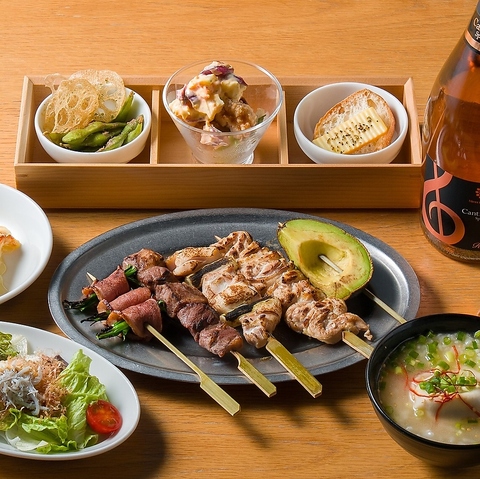 自慢の大ぶり焼き鳥と野菜串、おつまみなどが盛り沢山!