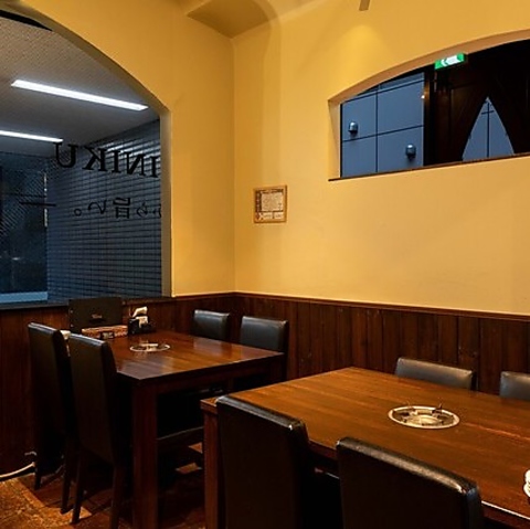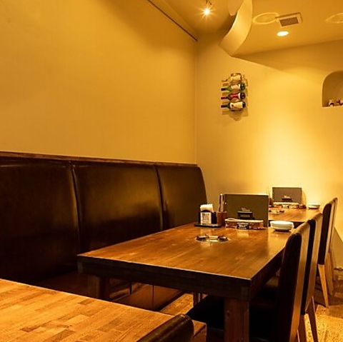 落ち着いた雰囲気が漂う店内。木の温もりが感じられるテーブル席を多数ご用意しております。柔らかな照明に包まれ、心地よい会話が楽しめる空間です。大人のデートや友人とのゆったりした時間にぴったり。特別なひとときを演出する、隠れ家的な雰囲気が心を満たしてくれます。ご来店お待ちしております。