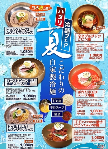 ハヌリの冷麺フェアを開催中♪日本初上陸の「トゥルケソース!ムグンジマックッス」を含む全5種類をご用意◎