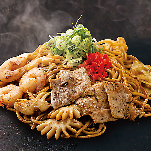 こだわりのオリジナル麺を使用♪モチモチっとした麺がソースによく絡まります★お酒との相性も◎