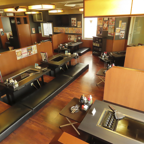お席は全席掘りごたつでゆったりとお寛ぎいただけます。鉄板を囲んでのお食事は老若男女に愛される食のエンターテイメント。週末に家族揃って訪れてみてはいかがでしょうか。また大人数様の宴会や貸切など承っております。お気軽にお問合せ下さい。