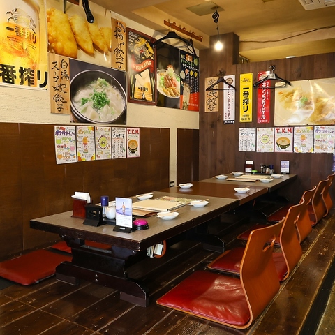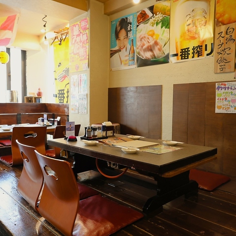 早く餃子を食べたいっ!椅子に座りたいというお客様は是非カウンターで♪出来立てを一番早く食べられるお席かつ、靴を脱がなくていいのでサクサクっと飲みたいっ!という時にもおすすめです♪