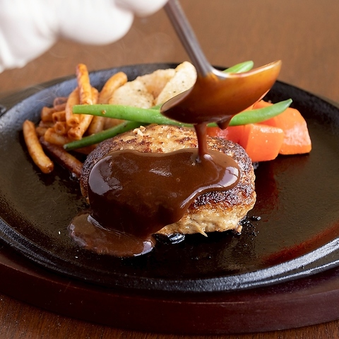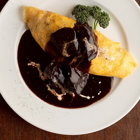 当店のこだわりは、厳選した牛スジ肉を香ばしく焼き上げ、たっぷりの香味野菜とともに煮込み、1週間かけて仕上げる自家製デミグラスソース。コク深く奥行きのある味わいは、様々な料理の土台となっています。