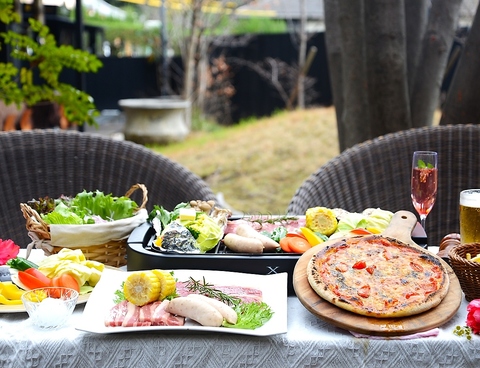 風薫るテラスでBBQ!飲み放題なしのプランです。今年の目玉は焼きたて本格窯焼きピッツァ!当日天然温泉・岩盤浴利用OK!お席は2HOK!前日17時までにご予約ください ・天候不良の際は中止となる場合がございます。中止の際は当日に店舗からご連絡させて頂きますのでご了承の上ご予約下さい。