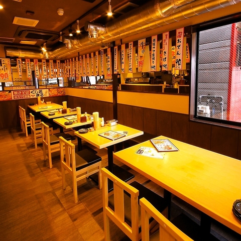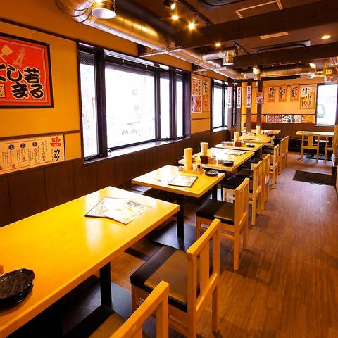 テーブル席を中心にご用意した、広々・明るく・清潔感のある店内。ご友人やご家族連れでのご利用はもちろん、会社宴会や飲み会など様々なシーンにご利用いただけます。各種ご宴会のご予約はお早めにどうぞ!また、おひとり様にはカウンター席も♪のんびり一人呑み、サクッと夜ご飯!様々なシーンでご利用いただけます♪