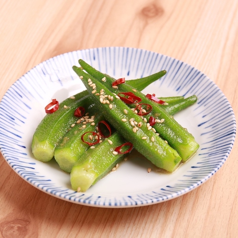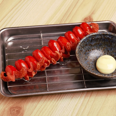 知覧鶏たたき等冷たい逸品、名物!くし若の赤どて焼き等温かい逸品、鉄板、揚げ物、〆もの…こだわりの料理がお得な390円均一!1本110円からの串カツや海鮮ユッケ、黒ホル焼きそば等特別メニューも取り揃えております。