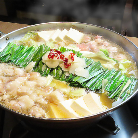 コク深い牛骨スープを使用。新鮮で大ぶりさらにぷりっぷりのもつをふんだんに使ったもつ鍋が大人気!