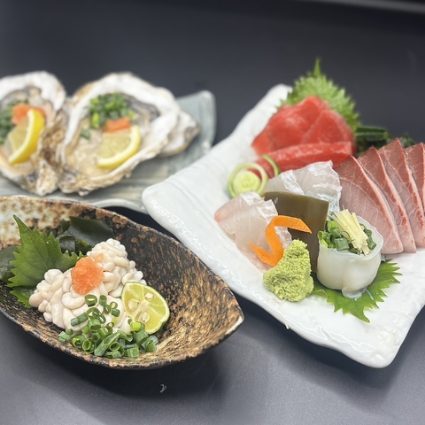 市場で厳選した新鮮な旬の魚のお刺身やその日の店長の気分で調理された逸品料理!他店と違って毎日変わるその日のオススメをぜひ♪※仕入れ状況で内容がかわりますのでご了承下さい。