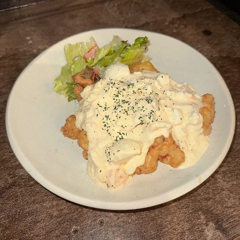 毎日仕込んでいる自家製のタルタルソースをたっぷりかけた当店自慢のチキン南蛮!注文率高し!!人気の秘密は大ぶりの鶏肉はカラッと揚げられており外サクッと中は肉汁が溢れるジューシーなとこ!また、たっぷりかけるタルタルソースはお店特製で玉葱を多めにすることでシャキシャキ感のあるソースに仕上げているとこです!