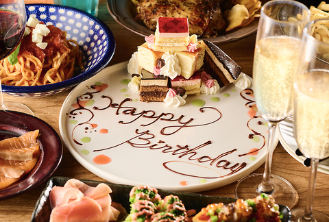 誕生日や記念日に◎お祝いケーキプレート(1,500円)ご用意♪素敵な思い出作りにいかがですか?