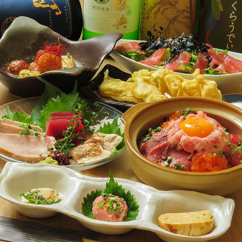 マグロ婆娑羅ならではのマグロ尽くしコース各種!三崎水産直送の自慢のマグロや自家製ローストビーフ、看板メニューの映え肉マグロなどなど。飲み放題もセットでご案内いたしております♪上野 個室 居酒屋 デート 女子会 誕生日 記念日