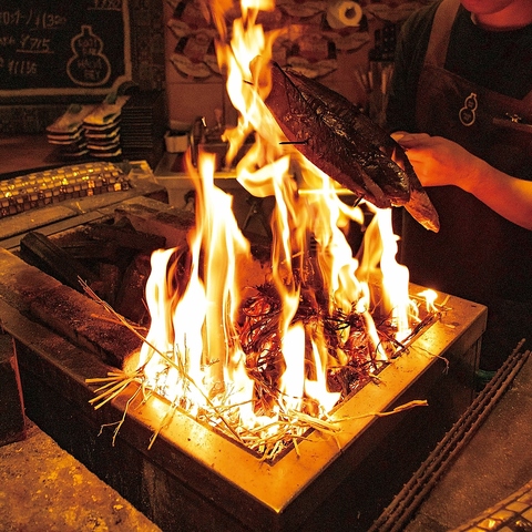 地物の美味しい魚を一気に焼き上げます。アラカルトはもちろん、コースでも藁焼きを楽しめます。