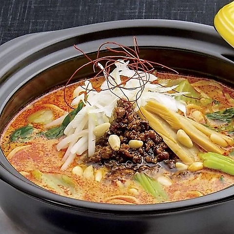 ぐつぐつ煮え立つ土鍋から立ち上る香ばしい胡麻と辣油の香り。濃厚でクリーミーなスープに絡む麺、旨辛の肉味噌とシャキシャキ野菜が絶妙に調和。最後の一滴まで飲み干したくなる、身体の芯から温まる至福の坦坦麺。