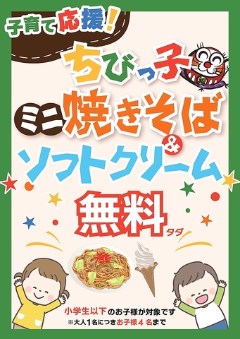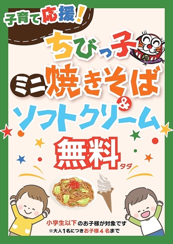 子育て中のご家族を応援します!ちびっこミニ焼きそば&ソフトクリームがちびっこ無料!