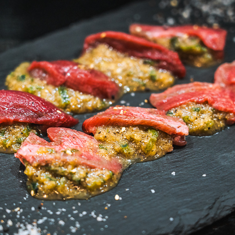 厳選肉をより美味しく、そしてみなさまに幸せを贈りたいという思いから、肉質やお客様の特徴・体質に併せてカットや味付けを変えてご提供いたします。また、使う部位に合わせてカットを変え、味付けを変えてご提供しているため、素材本来の旨味を最大限に引き出した一品を、どうぞお楽しみ下さい。