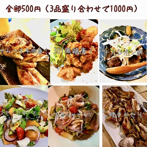 food500円メニュー(45品)から【3品で1000円】やその他創作料理(25品)