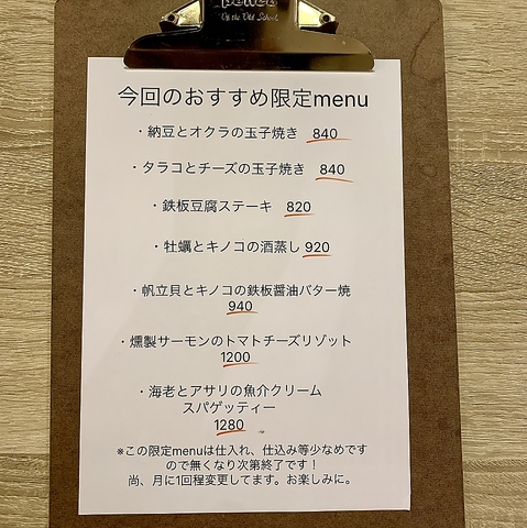 ☆月替わりオススメ(約7品)☆1品500円(3品1000円)酒場メニュー(45品)☆逸品料理(15品)
