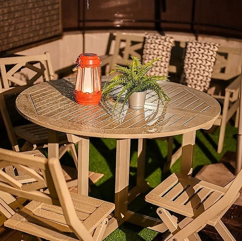 ペットもOKの屋外テラス席はご予約限定!お昼は心地よい日差しを浴びながら、夜は満天の星空の下でお食事を楽しめます。1グループ2~8名様までご利用可能です。雨天・強風時はご利用不可。