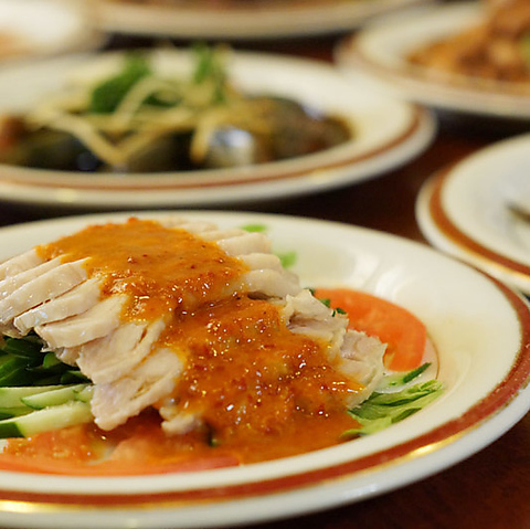 揚げ落花生/五香落花生/自家製ザーサイ/中華風冷やっこ/ニンニク昆布/塩山椒鶏軟骨揚げ/南国風春雨サラダ/パリパリ鶏皮の塩山椒がけ/落花生とほうれん草の香酢和え/ジャガイモ千切りラー油添え/中国青島特製ピータン/干し豆腐のラー油和え/山クラゲのさっぱり葱油和え/ゆばとセロリの痺れる麻辣和え/バンバンジー/蒸し鶏の黒胡椒ソースがけ/広東風蒸し鶏