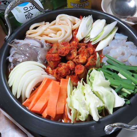 ぷりぷり海老×イイダコ×豚肉が旨辛スープでグツグツ!韓国釜山名物「ナッコプセ鍋」が登場♪コク深い辛さがクセになる、寒い季節にぴったりのあったか鍋で心も体もポカポカに!