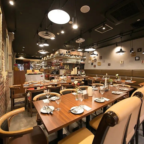 【ゆったり広々空間でお食事を♪】内装、照明、インテリアまで細部に渡り、ニューヨークを彷彿させるような店内にゆったりテーブル席を完備。席の間を確保して、広々とした空間でゆったりとお食事がお楽しみいただけます。ランチやお仕事帰りの飲み会、女子会、ランチママ会等様々なシーンにおすすめ!