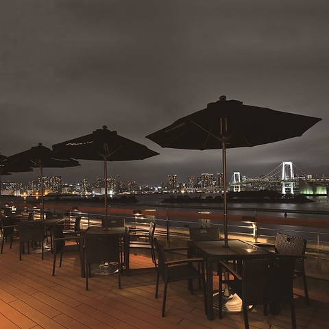 地上6階にあるテラス席からは、レインボーブリッジがみえるオーシャンビューを楽しめます!換気のされた空間でお食事をご希望の方は、こちらのテラス席へご案内いたします。