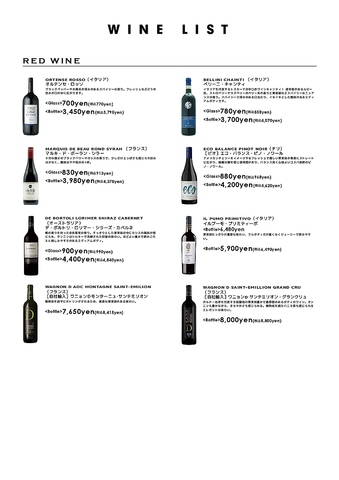 フランス産ワインやオリジナルカクテルも多数ご用意!!