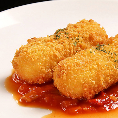 サクサクの衣の中から、濃厚なクリームがとろけ出す自家製トマトソースの本格カニクリームコロッケです。