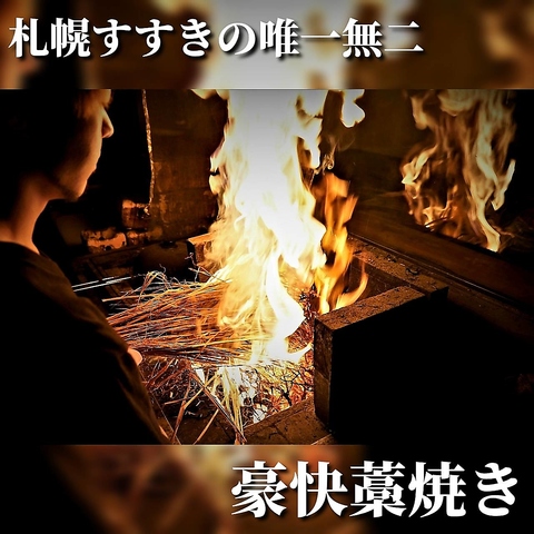 鰹や肉、野菜などを藁で豪快に焼く土佐の郷土料理「藁焼き」。炎を上げる藁焼きは、一気に高温で焼き上げるため、素材の旨みが凝縮されます。ほのかに芳しい藁の香りが素材の良さを引き立て、こだわりの素材を更に美味しくします。当店では料理人自ら道産食材を中心に生産場所まで足を運び、目利きしております。ぜひ北海道の新鮮な食材を、高知の名物藁焼きでご賞味くださいませ。