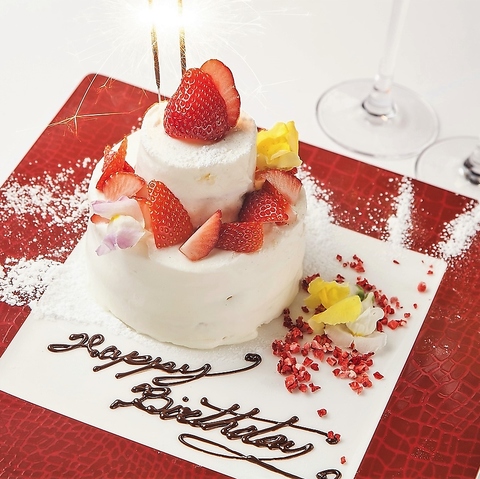 アニバーサリープランはお祝いにぴったりの自家製アニバーサリーケーキ付。大切な1日を華やかに。昼夜OK