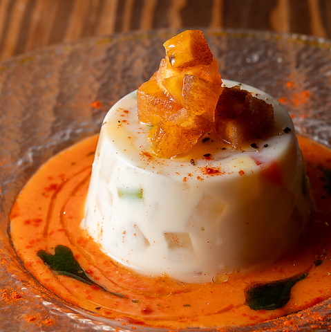 ※お野菜を豆乳とゼラチンで固めてます。手作りガスパチョソースと一緒にどうぞ
