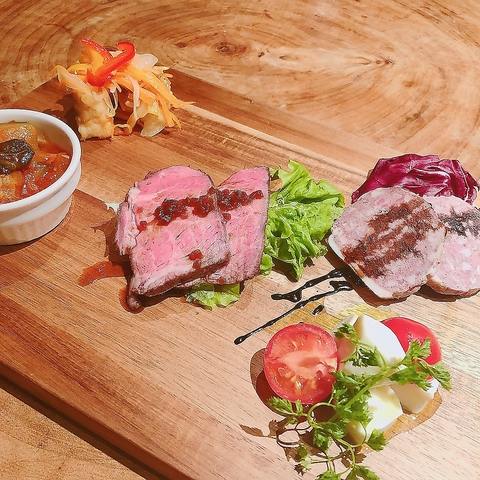 サラダやお肉料理、ピザやパスタなどこだわりの料理をお愉しみ下さい♪塊肉が楽しめるコースやデートに最適なペアコース、各種宴会やイベントにオススメな団体コースもご用意◎ビール・カクテル・サワー・フルーツジャーなど種類豊富なドリンクメニューも魅力!!個室席、2階のロフト席、ダーツ等様々なシーンでご利用いただけます!