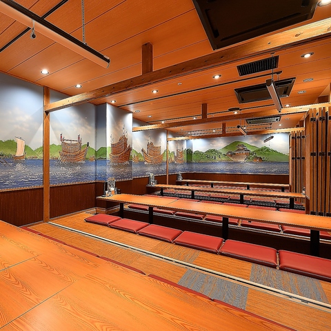 世界遺産「厳島神社」を彷彿させるお席です。ちょっとした集まりや会合に使いやすい掘りごたつ♪広島への旅行の夜にもぴったりなお席♪デートや少人数での飲み会から女子会、二次会など幅広い用途にご利用いただけます。