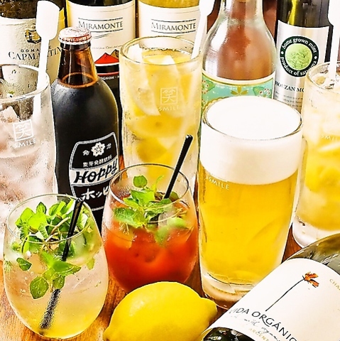 こだわりの料理はもちろん、ドリンクメニューも豊富に取り揃えております!お酒好きな方にも、ちょっとだけ楽しみたい方にもご満足いただける内容になっております。ご宴会向けのコースは全コース飲み放題付き!食べて飲んで楽しいお時間を♪