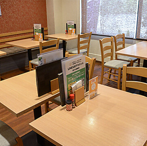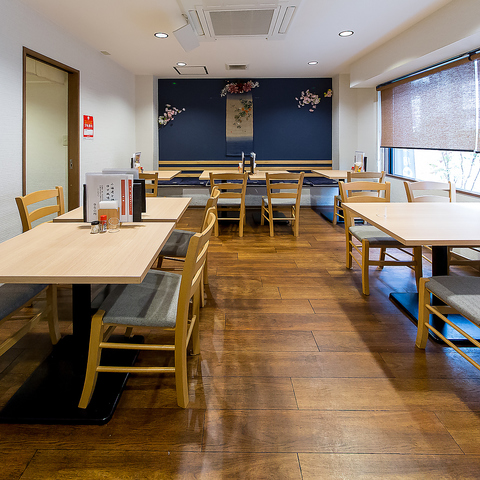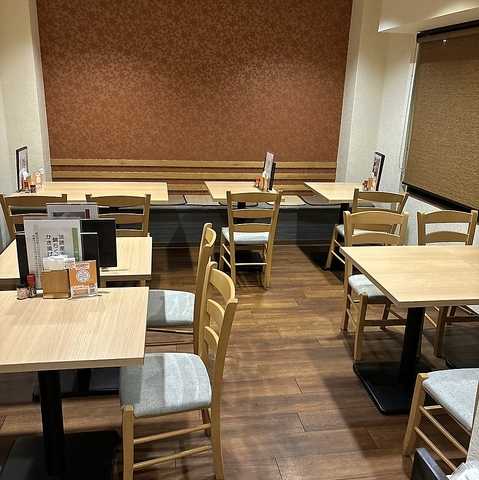 テーブル席が20席分ございます。ご家族やご友人とゆっくりとおくつろぎいただけます。大人数(9名様以上)でのご予約に関しましては、事前にお店までお問い合わせくださいますようお願いいたします。