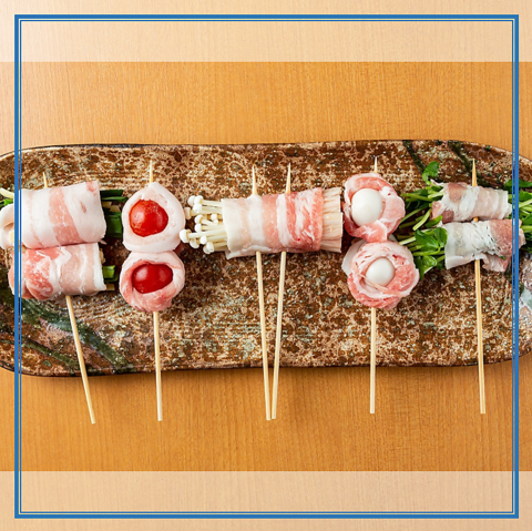 厳選した食材で造る豚串は日替わりで毎日15種以上をご用意しております♪その時々で違うお味を楽しめる当店自慢の串を是非、ご賞味ください♪