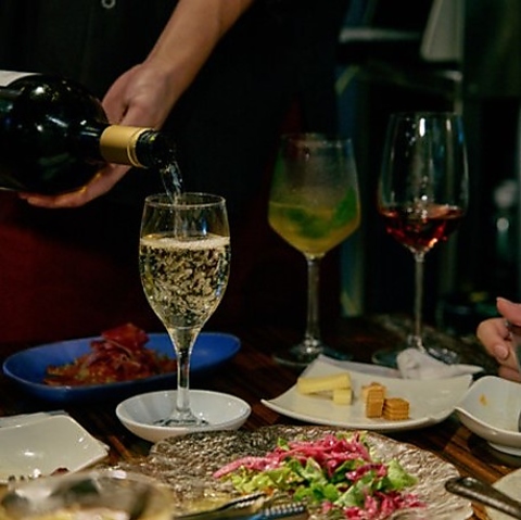 ワイン好き・肉好きの誰もが「自分のもう一つの家」に気軽に立ち寄ってもらえるよう、気取らずラフでありながらも大人がスタイリッシュにワインを飲むことができる空間を演出。親しい仲間とのサク飲みからデートや女子会はもちろん、会社の宴会にもお使いいただけます。