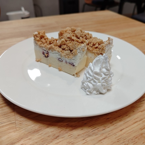 ゲームのお供に甘いスイーツはいかがですか?ザクザクのクランブル癖になるチーズケーキがオススメ!頭を使う頭脳系ゲームのお供にはぜひ甘いものを♪