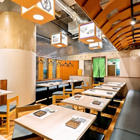 【明るく活気のある店内】JR大宮駅から徒歩2分!駅近なので、会社の同僚との飲み会や、ご友人との少人数でのお食事などのご利用ピッタリな明るく活気のある大衆居酒屋です。テーブルを繋ぎ合わせて組み変えれば人数に合わせてカスタマイズいただけます!