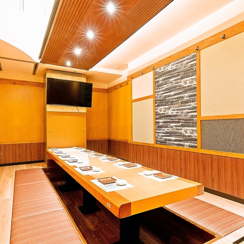 【最大60名様までご利用可能】<10名以上・20名以上・30名以上用途に応じた個室有>掘りごたつのお座敷をはじめ、人数や用途に合わせたお席をご用意可能です。TV付きの個室は忘年会、新年会など各種会社宴会や、同窓会、二次会など様々なシーンにご利用いただけます。大人数でのご宴会もお気軽にご相談ください。