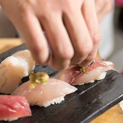 当店の寿司は醤油無しで美味しく召し上がれるように、一貫一貫ぴったりの味付けでご提供しております!お魚に合わせたこだわりの味付けをしておりますので、是非ご賞味ください。