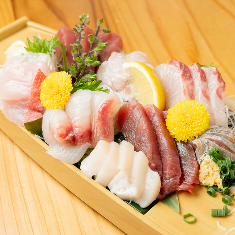 ,宴会のスタートはこれで決まり!新鮮な海鮮をを贅沢に盛り込んだ、テーブルが一気に華やぐ刺身盛り合わせです。
