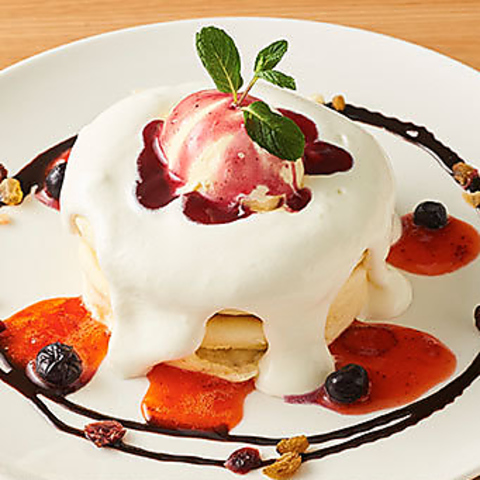 季節のパンケーキはその季節のフルーツを使ったとってもおいしいパンケーキです!自分へのご褒美、お友達同士、ご家族と一緒…にサンポカフェでお楽しみください☆