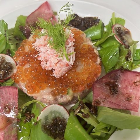 いろいろな味をちょっとずつ楽しめる「前菜盛り合わせ5種」ワインと会話が弾む味。季節で変わる9種類の前菜の中からお好きな前菜を5種選べるおすすめメニューです。