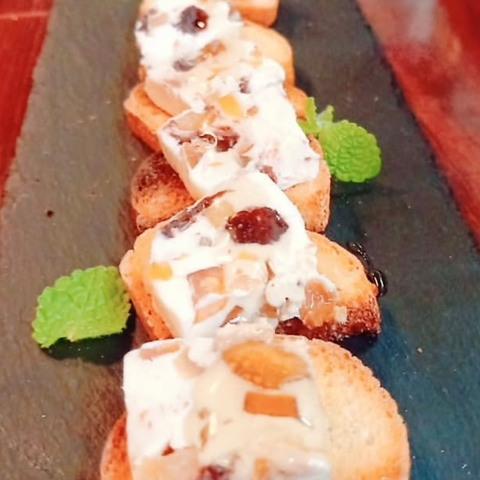 フランス語で「削るもの」「ひっかくもの」という意味をもつこのチーズはお酒と相性抜群!クセが無く食べやすいのが特徴です。熱々のチーズをお客様の目の前で、とろ~りおかけいたします♪